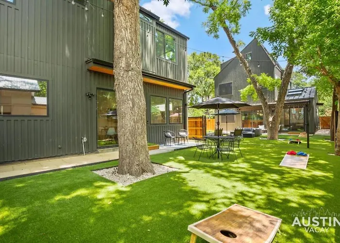 Brand New Luxurious Property And Huge Outdoor Space bietet die perfekte Kombination aus Komfort und Eleganz im Herzen von Austin. Diese Unterkunft ist der ideale Rückzugsort für Reisende, die sowohl Erholung als auch Abenteuer suchen. Die großzügigen Außenanlagen laden dazu ein, die Sonne zu genießen und die Umgebung zu erkunden.